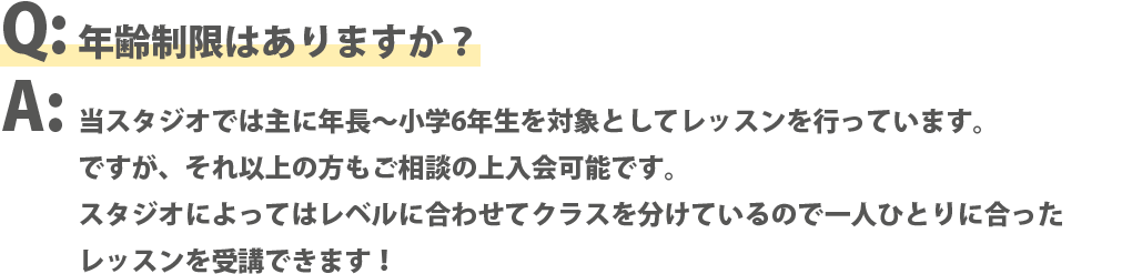 - 祝日、災害、冠婚葬祭、急な体調不良等、やむをえない理由でレッスンを休講する場合があります。その場合は会員様とご相談の下、別日に補講という形をとらせてもらうことがあります。